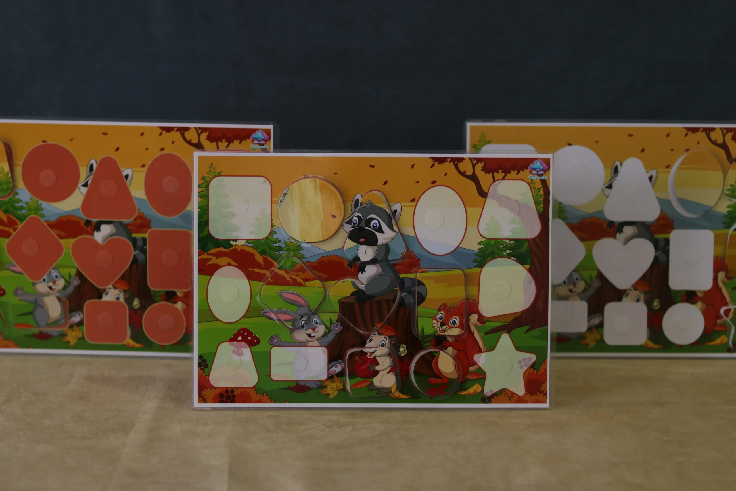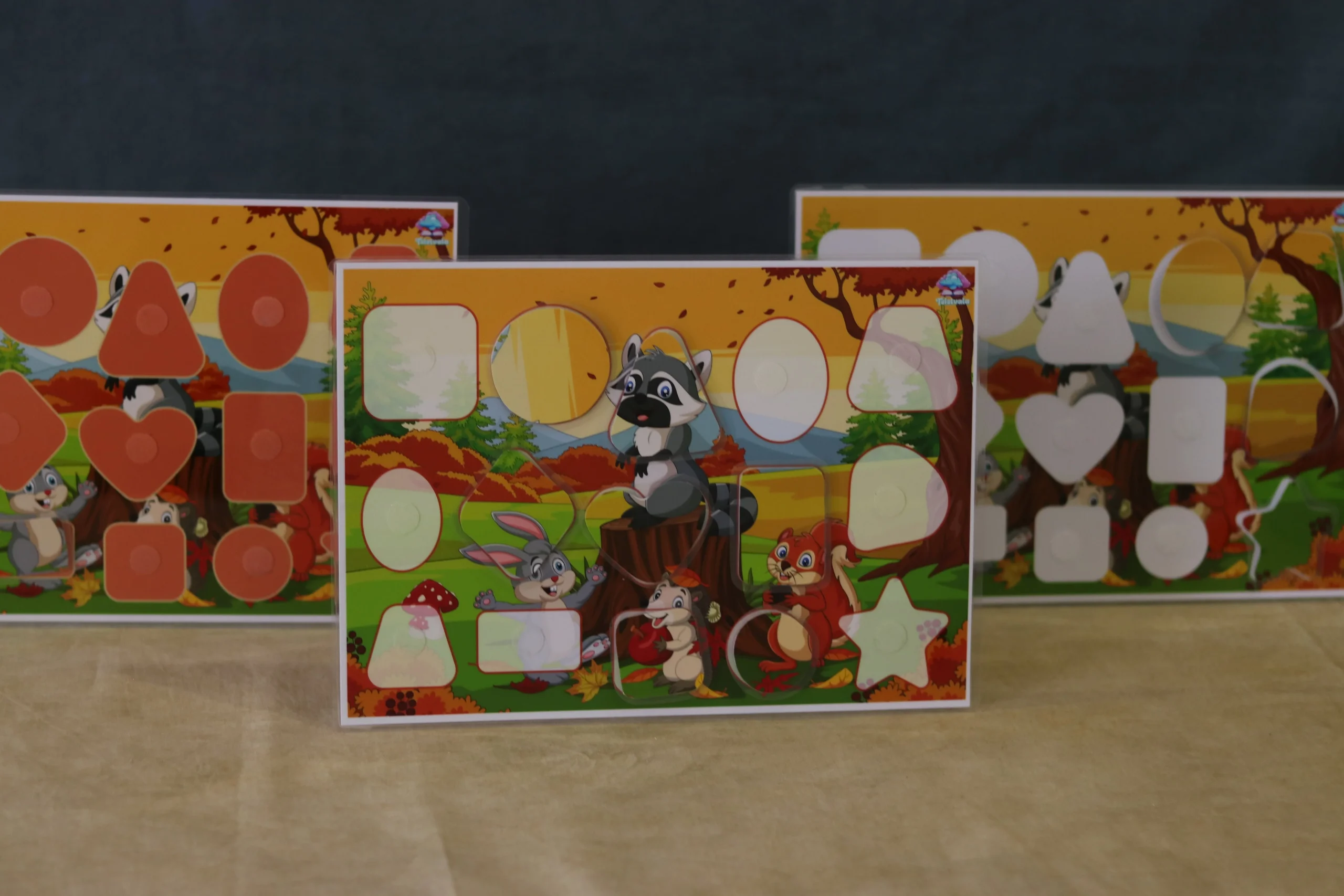 წარმოგიდგენთ გეომეტრიული ფიგურების დაფებს. 3 დაფა და 15 დეტალი. თითოეული დაფა წარმოადგენს სხვადასხვა სირთულის დავალებას.