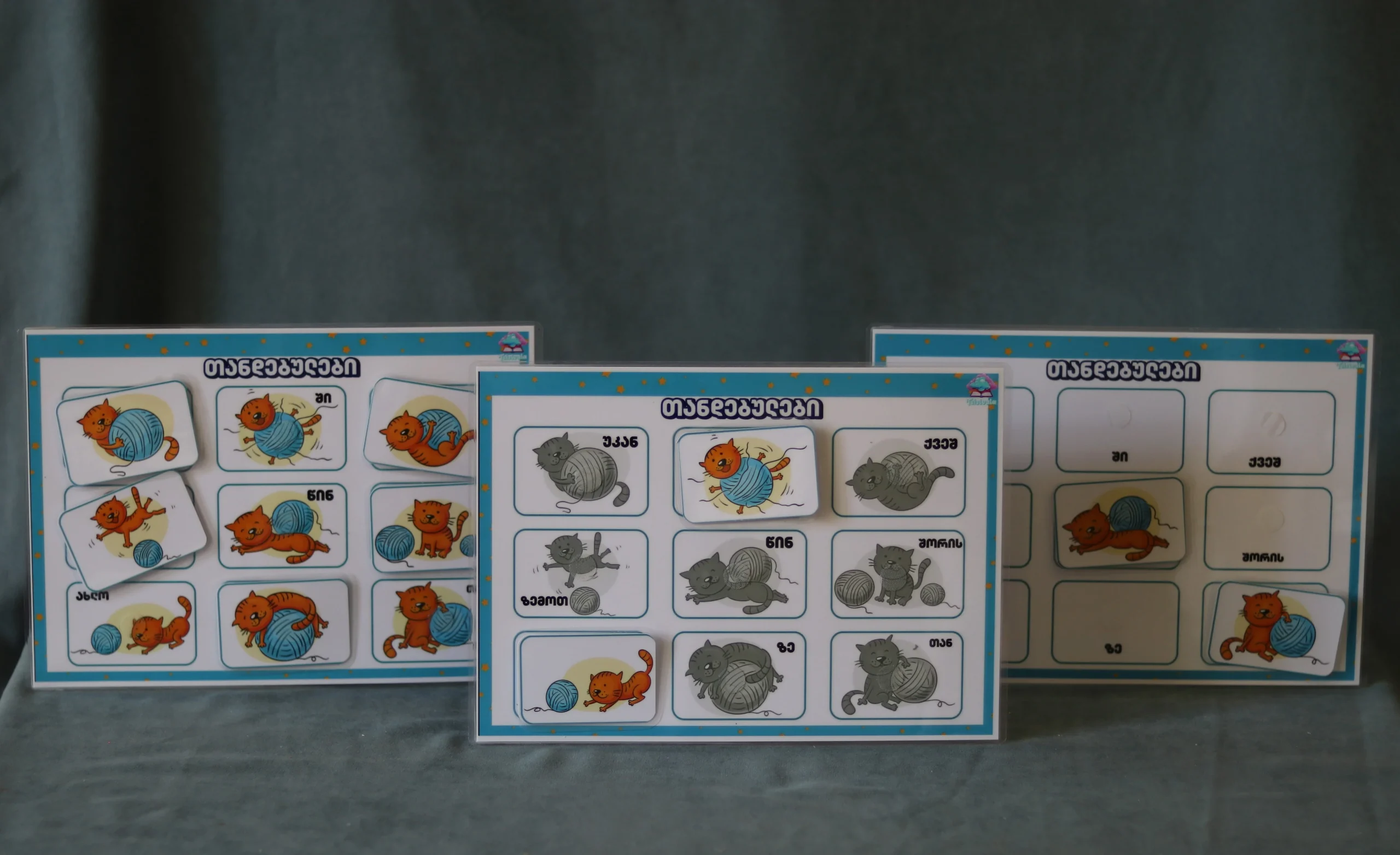 აღნიშნული შემეცნებითი დაფები დაგეხმარებათ მაქსიმალურად ეფექტურად და ხალისიანად ასწავლოთ ბავშვს თანდებულების განსხვავება.
